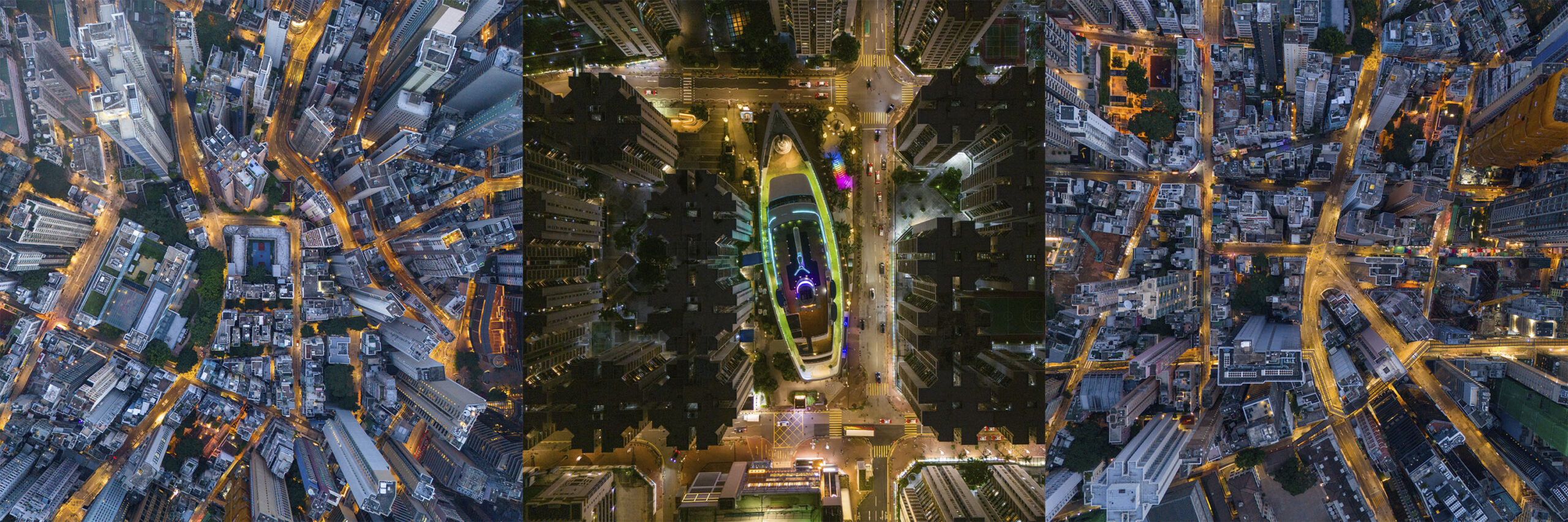 Symmetrien und Farben prägen die Ästhetik, der Blick von oben, aus der für den Menschen natürlicherweise nicht erreichbaren Perspektive, zeigt die Stadt als Kaleidoskop. Nach langen Topshotaufnahmen schwenkt die Ansicht nach oben, der Blick ist freigegeben auf das Gesamte – die als Miniaturwelt empfundene Ansicht wechselt in ein Erkennen des Ausmaßes der Metropole.